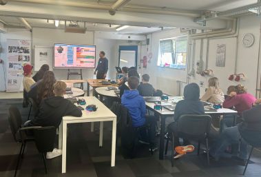 An 8 modernen Computerarbeitsplätzen wurde in den Räumlichkeiten der Maschinenbau Firma Kitz GmbH gearbeitet. Die Schüler*innen der Klassenstufen 7 und 8 konnten ohne Vorerfahrung nach wenigen Minuten schon ihr erstes Programm mit der Programmiersprache Calliope erstellen.