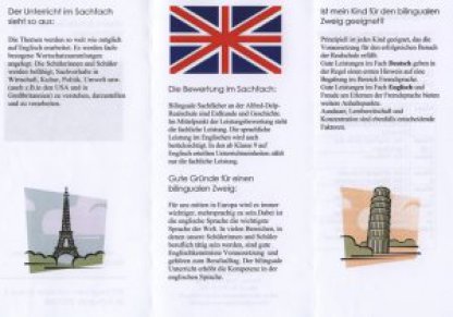 mit verstärktem Englischunterricht in den Klassen 5 und 6, sowie ab der Klasse 7 mit Unterricht in Sachfächern wie Erdkunde oder Kunstgeschichte auf Englisch an. Der Unterricht findet in Kursform